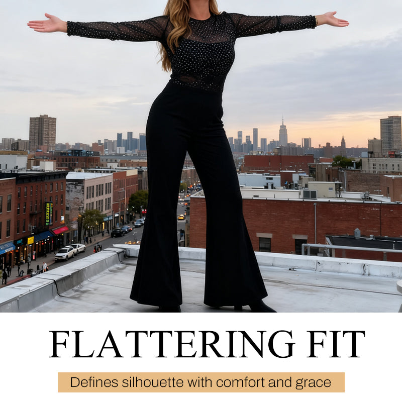 ELEGANT DESIGN: This jumpsuit features a classic round neck and long sleeves, accented with sparkling sequin on the sheer bodice. This detail adds a subtle sparkle, making the garment suitable for chic and polished appearances. The design offers an understated yet glamorous option, enhancing any wardrobe with a fashionable touch.