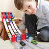 ONE-PRESS LAUNCHER - Features an intuitive, one-press launch mechanism that sends cars flying down the track. This simple start ensures a fair and exciting race kickoff, letting kids focus on the fun without complex setups.