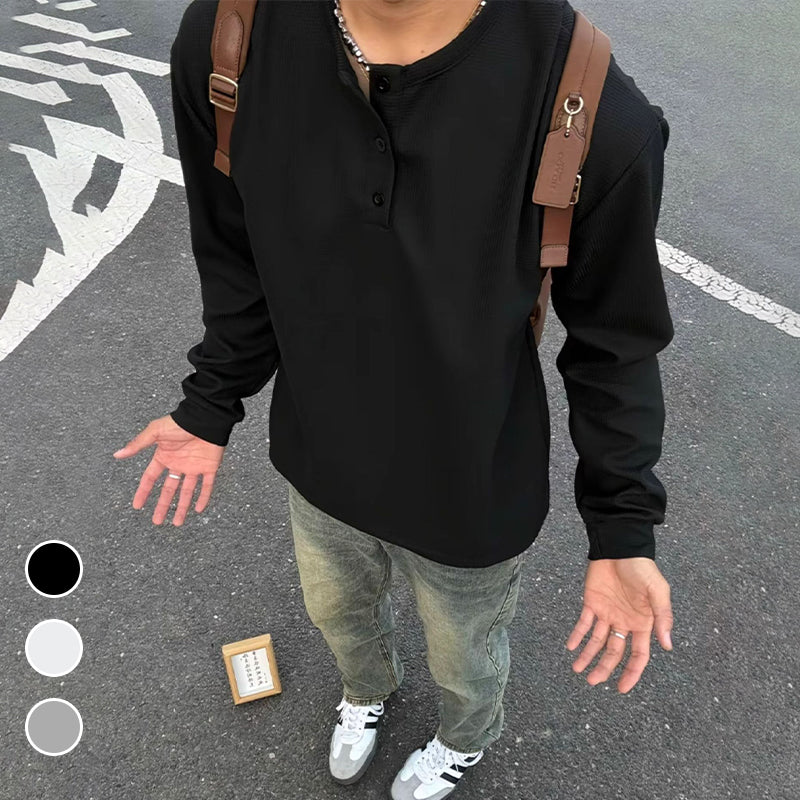 Men's Vintage Long Sleeve T-Shirt with Buttons