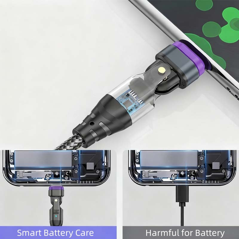 DYNAMIC ANGLE PLAY - Uninterrupted gaming and video streaming are now possible with this cable's unique 180° rotatable design. Freely adjust the connection angle to avoid cable interference, ensuring a comfortable grip and seamless experience, especially during intense mobile gaming sessions or extended media consumption. Enjoy your device without restrictions.