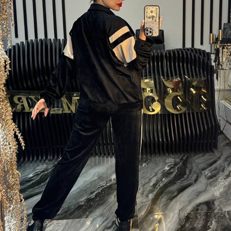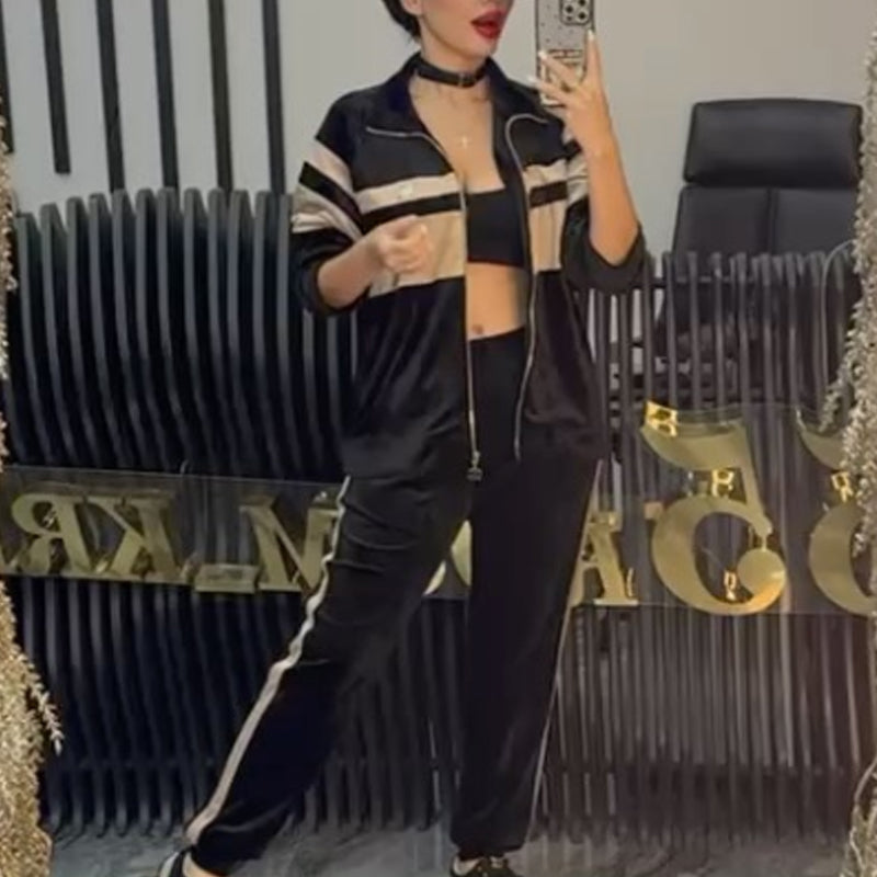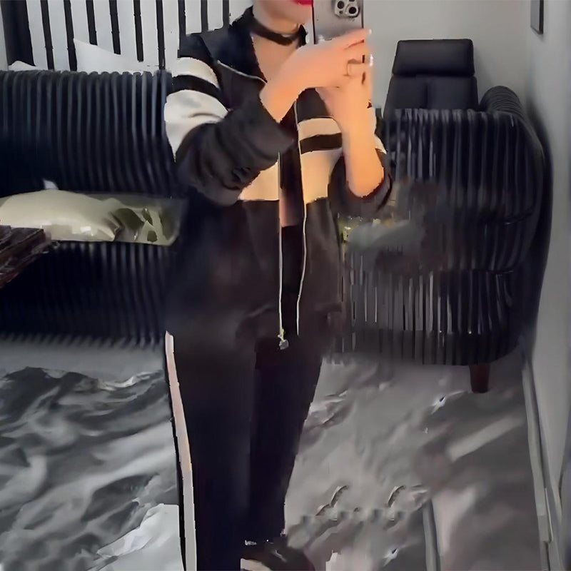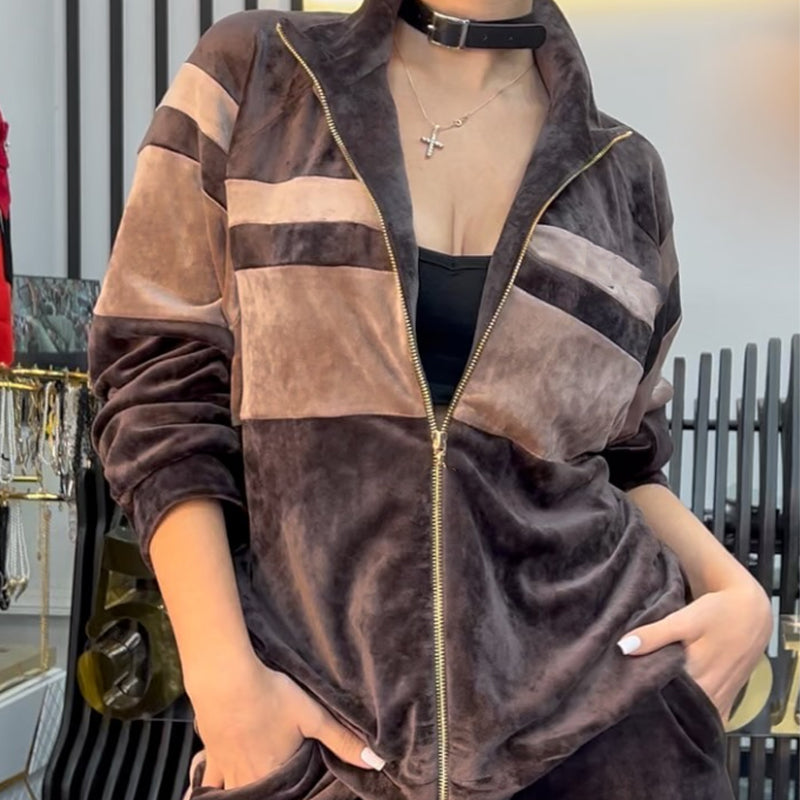 🔥 55% OFF Today! Velvet Striped Patchwork 2-Piece Set – Luxurious Comfort Meets Effortless Chic!