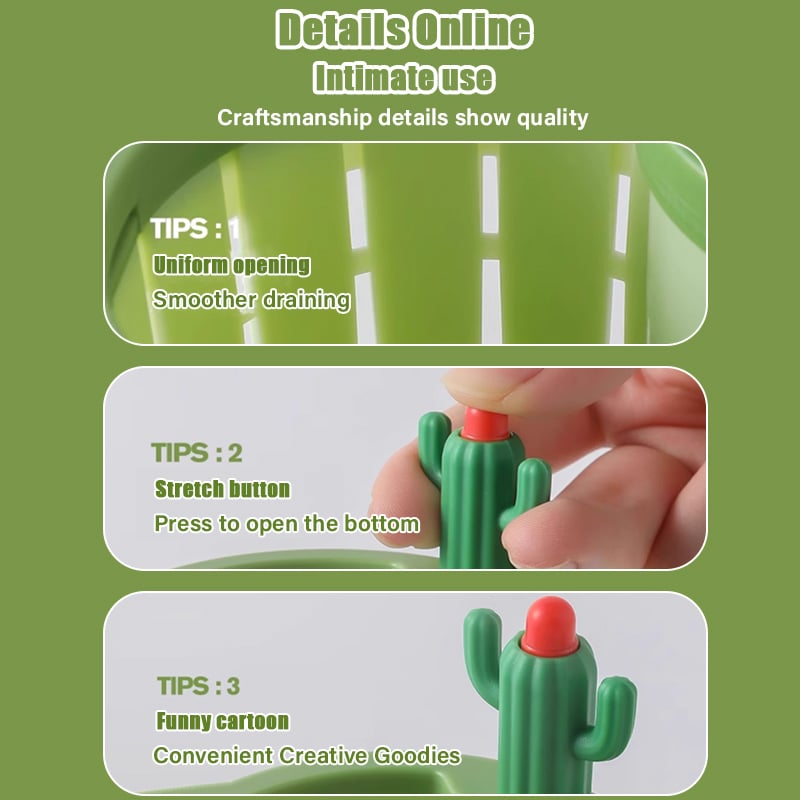 Kitchen Residue Filter: This cute cacti is a straining master. This strainer for the kitchen sink is very effective for filtering debris, leftovers, the residue of washing vegetables, tea scraps, etc. to keep your kitchen sink clean.