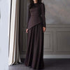 FLOWING MAXI LENGTH SKIRT: The accompanying skirt extends to a graceful maxi length, offering both coverage and refined drape. Its long, fluid silhouette moves effortlessly, providing comfort and a touch of drama. This design ensures a sophisticated appearance, suitable for events requiring modest yet stylish presence, complementing various footwear.